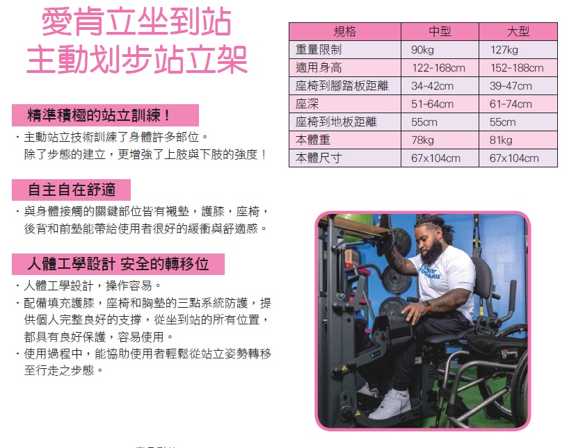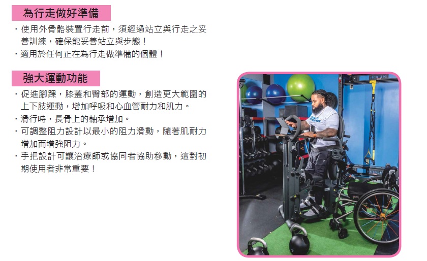 受傷或一陣子沒有站立的使用者,需要透過訓練來適應站立 / 坐姿 / 行走的姿態