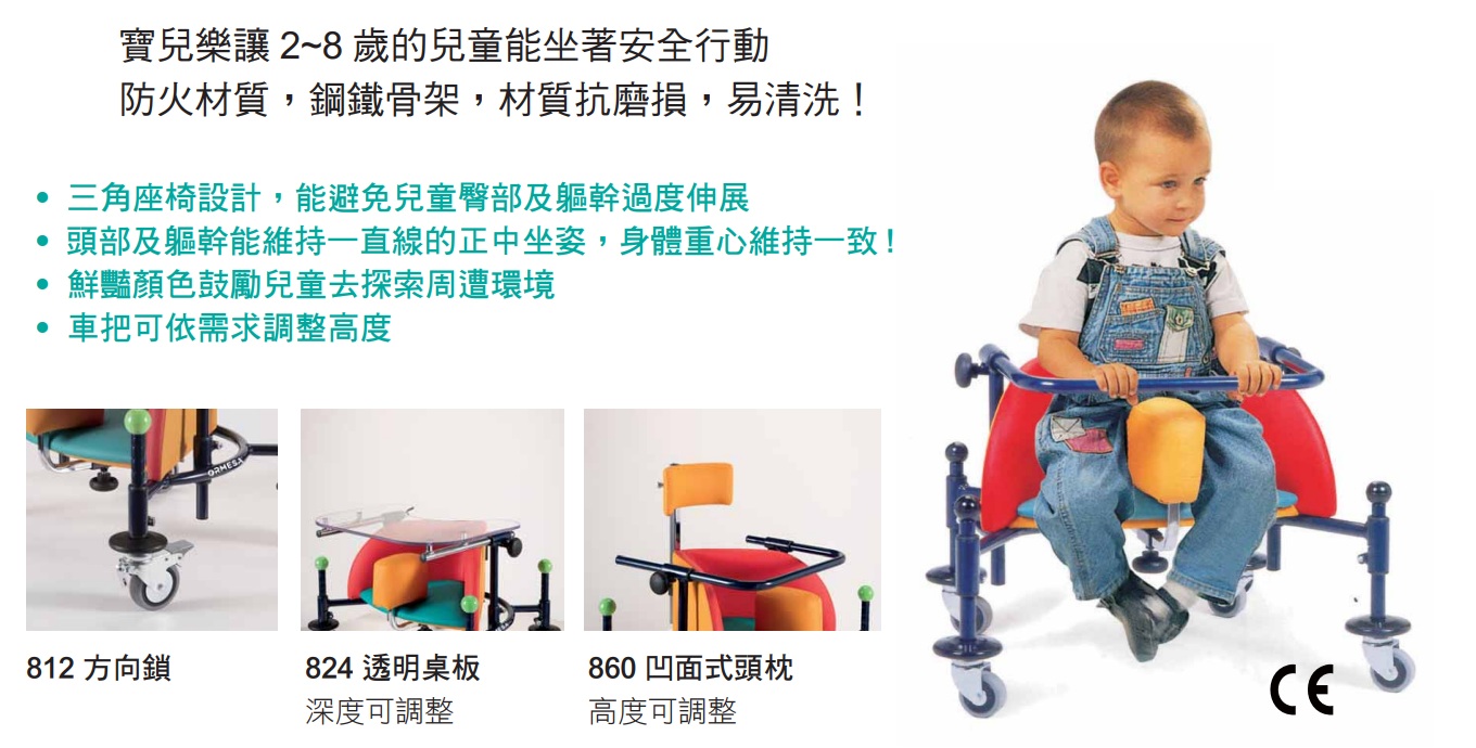 三角座椅設計避免兒童不當伸展四肢,並讓頭部及軀幹能成一直線坐姿